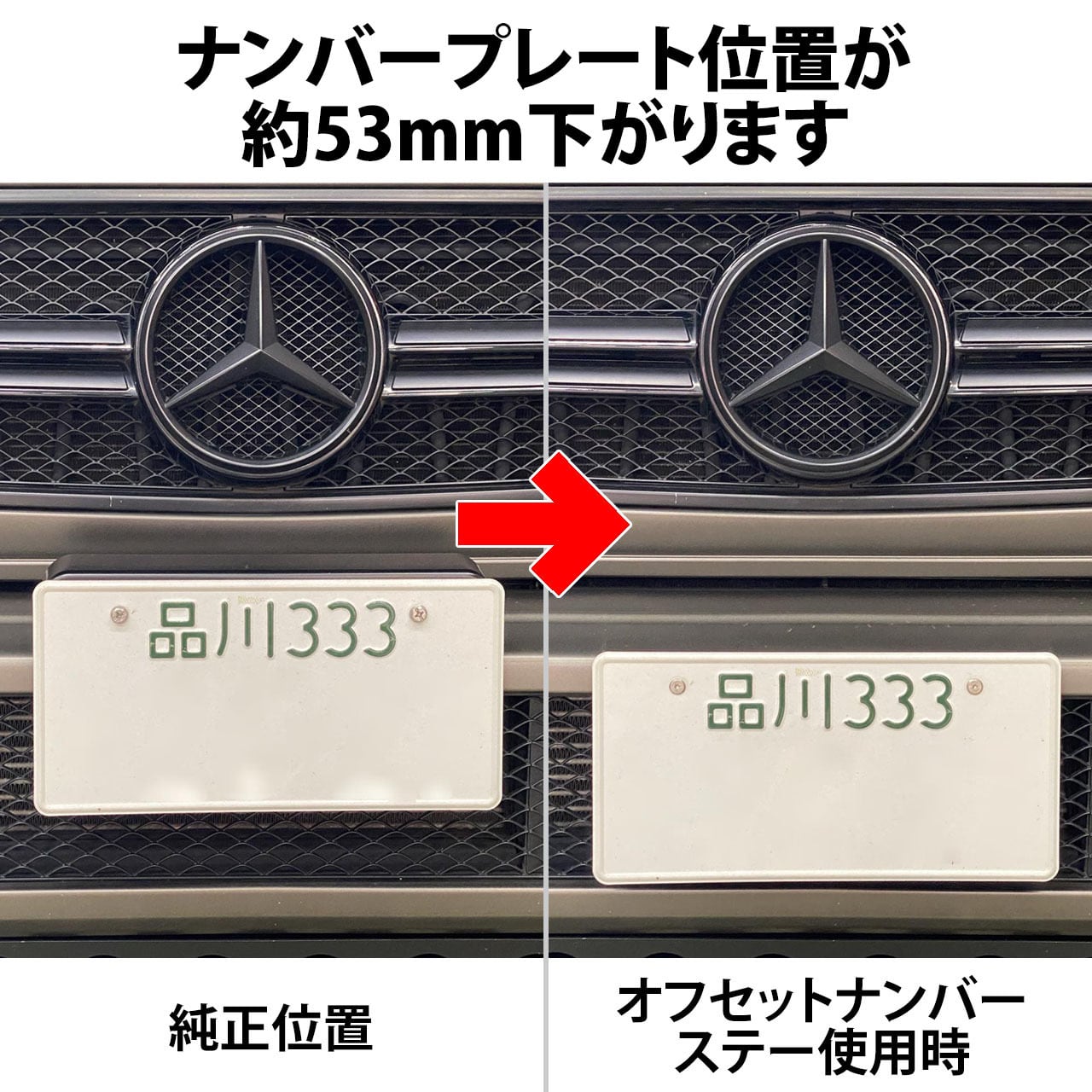 ・ナンバープレートを下方向に約53mm移動させて取り付けることができます。
